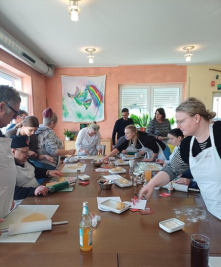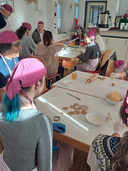 In unserer Tagesstätte “Insel” in Roth und unserer Tagesstätte “LebensTakt” in Schwabach lag am Donnerstag ein feiner Plätzchengeruch in der Luft. Erst wurde fleißig Teig gerollt, dann ausgestochen und gestempelt und schließlich landeten die fertigen Plätzchen mit der Aufschrift „Keks gegen Rassismus“ im Ofen … bevor sie in den ein oder anderen hungrigen Mund wanderten. Beim gemeinsamen Backen entstand aber nicht nur leckeres Weihnachtsgebäck, sondern auch ein Gefühl von Gemeinschaft und Raum für Gespräche, u. a. über wichtige soziale Werte.