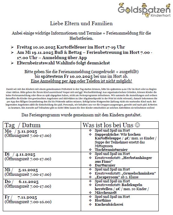 Herzlich Willkommen beim Kinderhort Goldspatzen