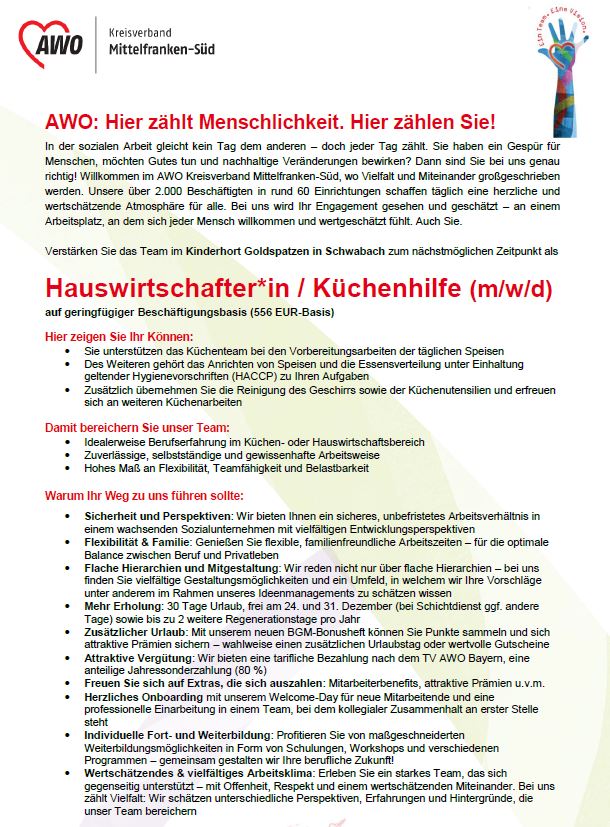Weitere Informationen sind auf unserer Karriereseite "AWO works!" zu finden.