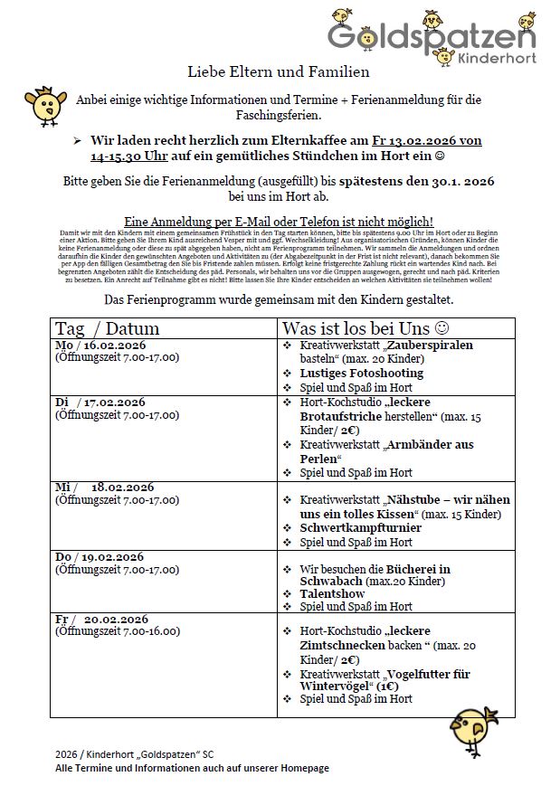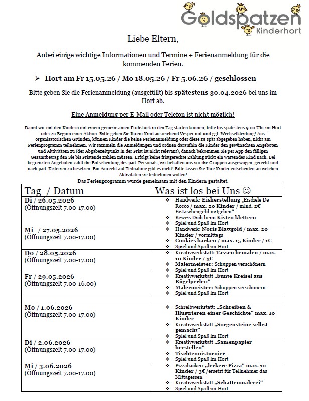 Melden Sie sich rechtzeitig für einen Hortplatz bei uns an.