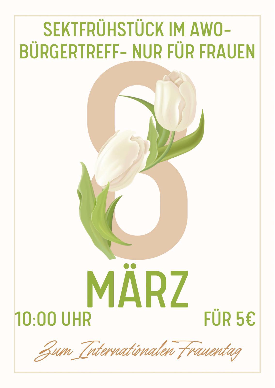 Bitte melden Sie sich per E-Mail (Anmeldung Sektfrühstück Frauentag 2026) an.