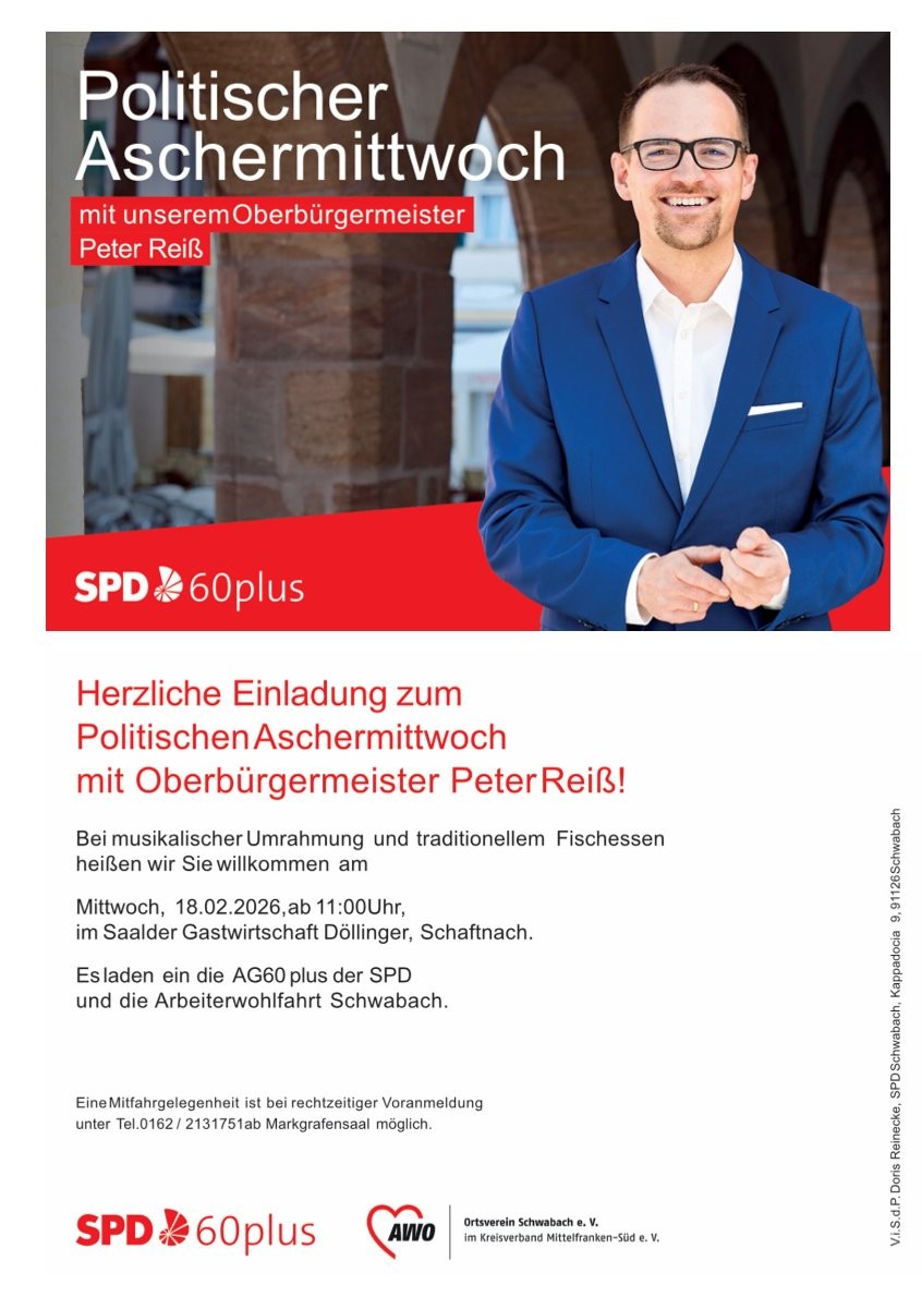 Abfahrt vom Parkplatz des Schwabacher Markgrafensaales 13:00 Uhr.Der Unkostenbeitrag für die Busfahrt beträgt für Mitglieder 21 Euro, für Nicht-Mitglieder 25 Euro.
